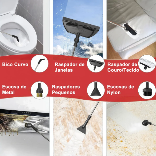 Projetado para quem valoriza uma limpeza completa e rápida, seu sistema de vaporização pressurizada oferece jatos poderosos que alcançam cantos, frestas e áreas de difícil acesso. Ideal para uso na cozinha, banheiro, piso, estofados, vidros, grades, fogão, rejuntes e muito mais.