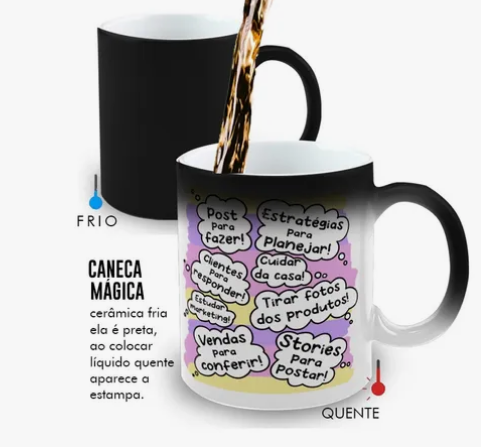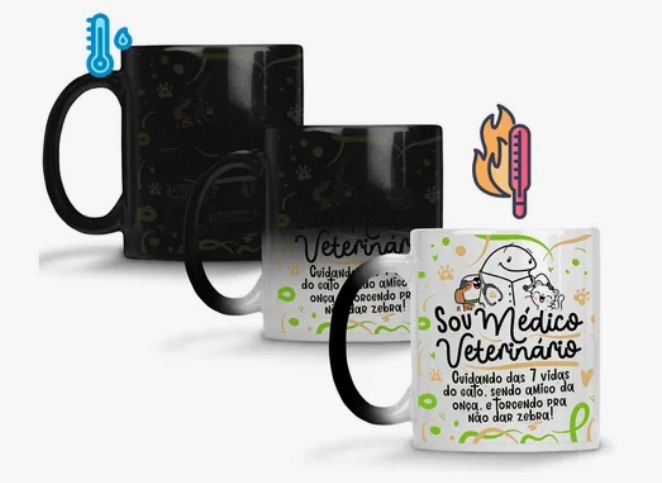 Mais que uma caneca, um presente cheio de significado para quem vive com amor a sua profissão. À primeira vista, sua superfície escura guarda um mistério — mas basta o calor da bebida favorita para revelar, como mágica, a estampa personalizada da área profissional, trazendo à tona cores e detalhes que refletem dedicação, talento e orgulho.