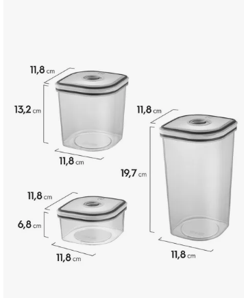 Com design **transparente**, você encontra o que precisa em segundos, sem abrir cada pote. As **tampas brancas** garantem um fechamento seguro, preservando o sabor e a qualidade dos alimentos, além de trazer um toque clean e sofisticado ao ambiente.