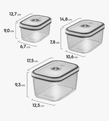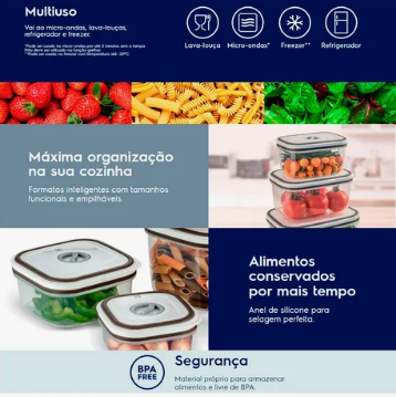 * Potes herméticos práticos e resistentes, ideais para conservar alimentos.