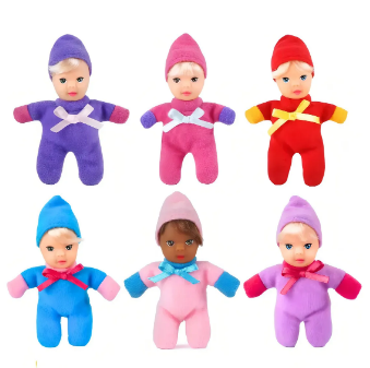 * 6 bonequinhas em **cores vibrantes e variadas**