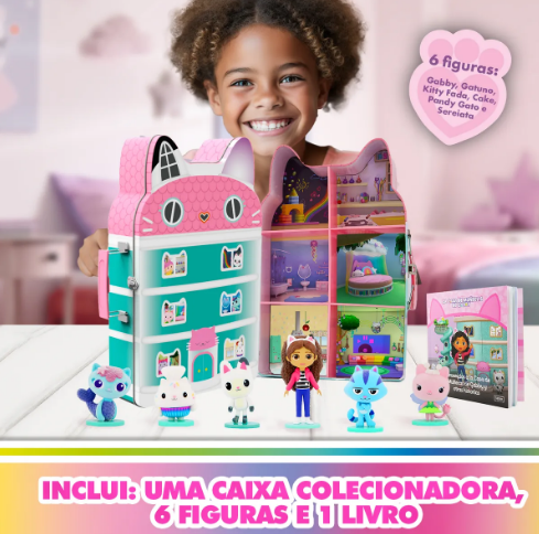 Cada detalhe foi pensado para transportar as crianças diretamente para o mundo mágico da série **Gabby’s Dollhouse**, onde tudo é possível e a diversão nunca tem fim. É o presente ideal para quem ama histórias fofas, personagens carismáticos e brincadeiras que despertam a criatividade.