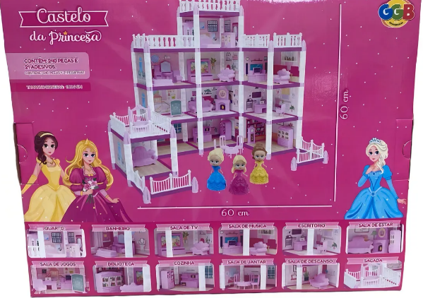 Com **60 cm de altura e 60 cm de largura**, o brinquedo é perfeito para proporcionar horas de diversão, incentivando o faz de conta, a criatividade e o amor pelos contos de princesa.