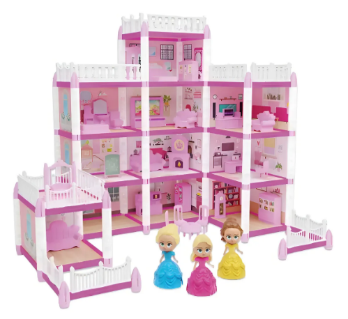 Com **240 peças**, o castelo possui **três princesas** e **24 móveis**, distribuídos em ambientes completos como quarto, sala de jantar, cozinha, sala de estar, biblioteca, sala de música, escritório e até sacada — tudo cuidadosamente projetado em tons delicados de rosa, branco e lilás.