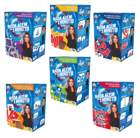Transforme qualquer encontro em um momento de risadas, competição saudável e muita adrenalina com os jogos **Nada Além de 1 Minuto**! Inspirados nos desafios rápidos e criativos, cada edição traz provas emocionantes que vão testar sua habilidade, equilíbrio e raciocínio – tudo em apenas **60 segundos**.