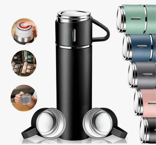 A garrafa térmica de **500 mL** mantém sua bebida quente ou fria por horas, enquanto as **três xícaras de inox** permitem dividir a experiência com amigos, família ou colegas de trabalho. Seja para um café no escritório, um chá em casa ou até mesmo uma bebida gelada durante um passeio, este kit é a escolha certa para tornar cada pausa mais especial.
