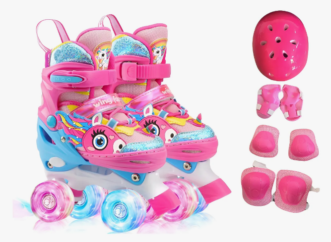 Com design estável de **4 rodas**, proporciona equilíbrio e confiança até para quem está começando. O **ajuste confortável**, o **fechamento seguro** e o **kit completo de proteção** (joelheiras, cotoveleiras e capacete) garantem momentos de pura alegria com total segurança.
